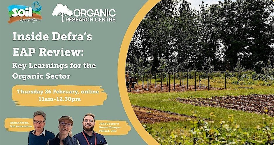 Co-delivered by Soil Association and the Organic Research Centre, this webinar presents key findings from a recent Environmentally Assured Production (EAP) evidence review conducted by the Organic Research Centre (ORC) for Defra – (Cooper et al. 2025), A review of the role of environmentally assured production in supporting environmental goals, and a price and cost benefit analysisThe review provides a robust and timely assessment of the contribution of certified organic farming to environmental outcomes, alongside a clear articulation of current evidence gaps and limitations.